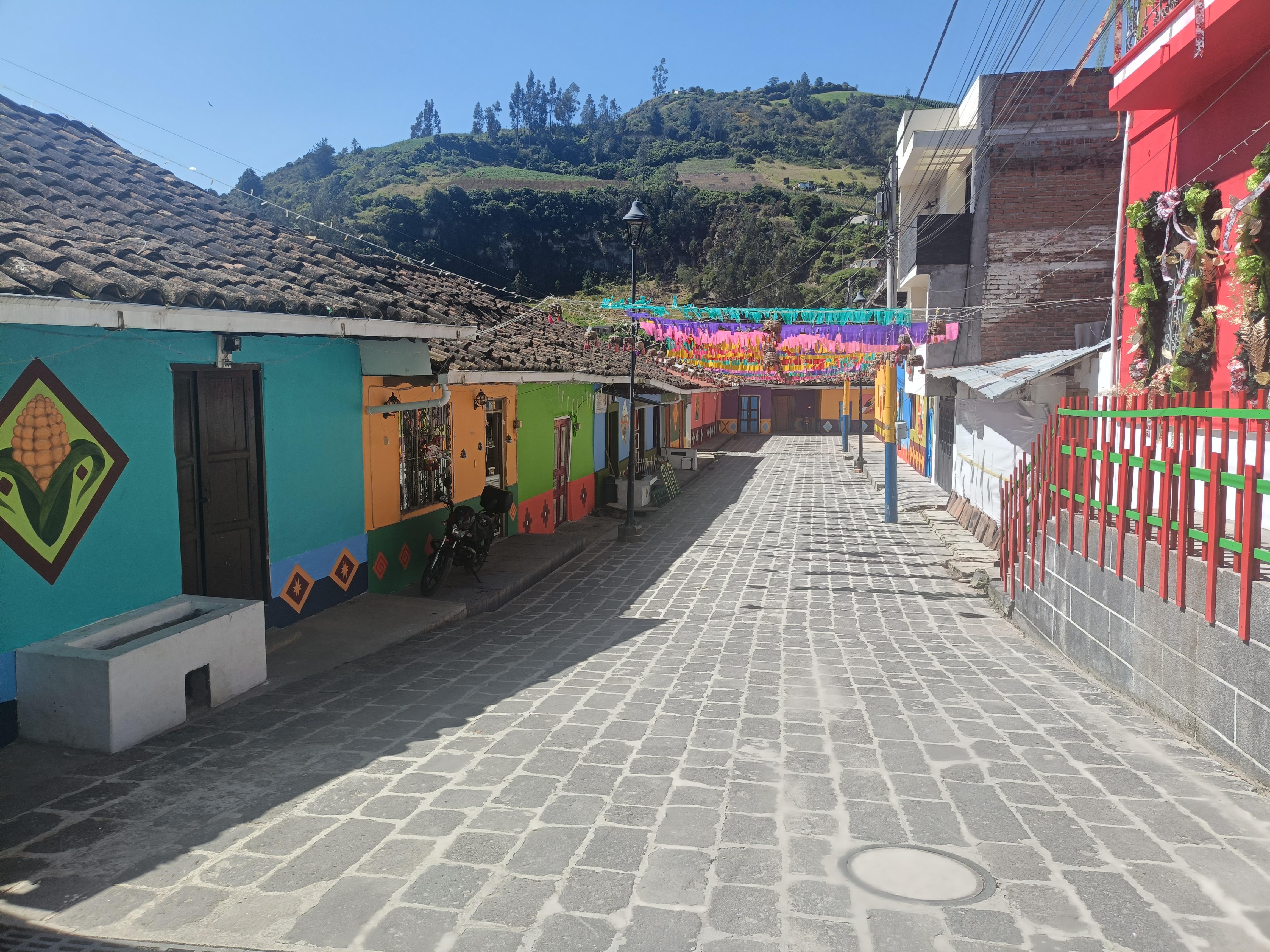 Sus calles empedradas, flanqueadas por casas tradicionales de colores vivos, conservan el encanto de un barrio andino lleno de historia y hospitalidad. Las fachadas, con balcones de hierro forjado, ventanas enmarcadas y cercas pintadas con tonos alegres, reflejan el orgullo y el cuidado de una comunidad que recibe a peregrinos y turistas con los brazos abiertos.